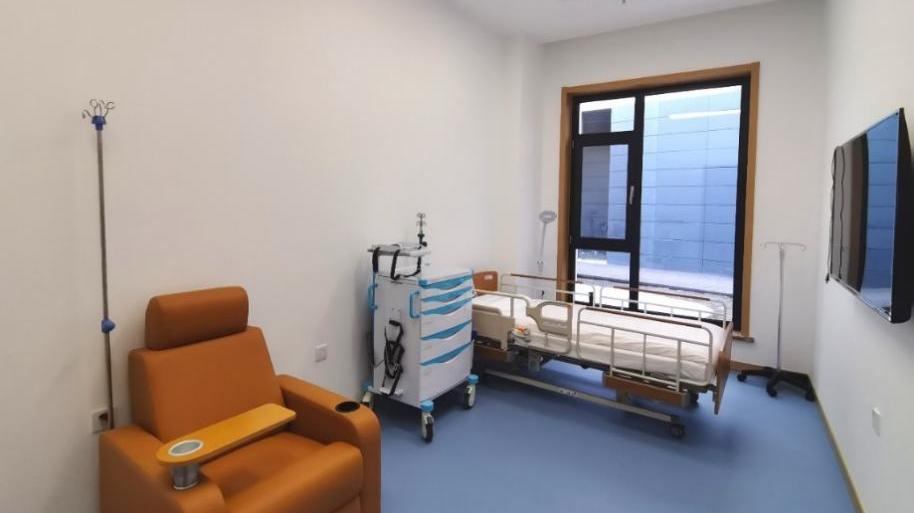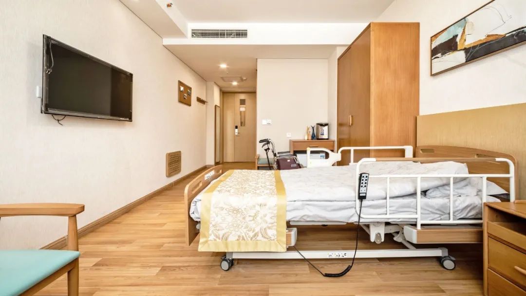 房间内配备全自动护理床,可以一键调节高低,同时配备辅助座椅及轮椅等设备,为老人提供便利的生活条件。