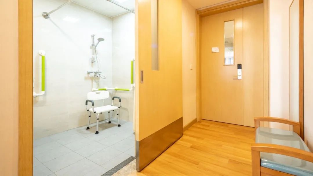专业照护区的房间设计结合了医疗机构的专业布局,房间以及厕所的门上均设置了玻璃窗,便于工作人员护理巡诊;