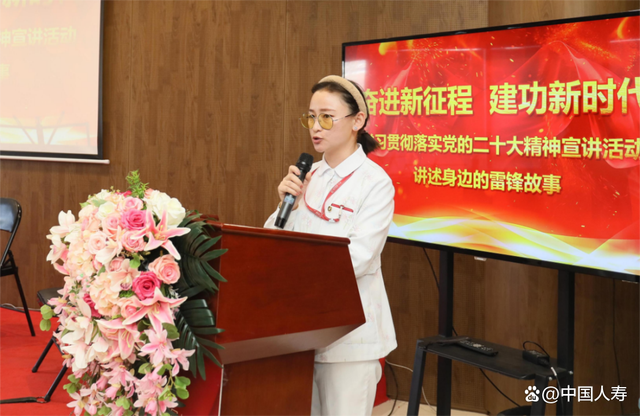 敬老爱老是雷锋精神的重要体现。国寿(天津)养老养生投资有限公司照护经理、全国“金融五一劳动奖章”、中国人寿“巾帼建功能手”获得者彭靓如在现场发表了感人至深的宣讲,引人共鸣,掌声不断。